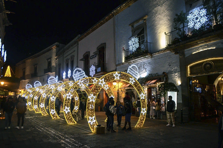 A partir de esta noche y hasta el 7 de enero, la ciudad lucirá, para disfrute de las familias queretanas y de quienes nos visitan en estas fiestas navideñas y de fin de año, un total de: 92 guirnaldas de luz, 174 adornos decorativos y 19 adornos monumentales, 1 árbol navideño monumental y 12 proyectores en sitios públicos como son: el Andador 5 de mayo, Andador Libertad, Jardín Guerrero, la Alameda, calle Corregidora, Plaza Constitución, el Tanque de Agua, las siete delegaciones municipales, Plaza los Arcos y los mercados municipales.