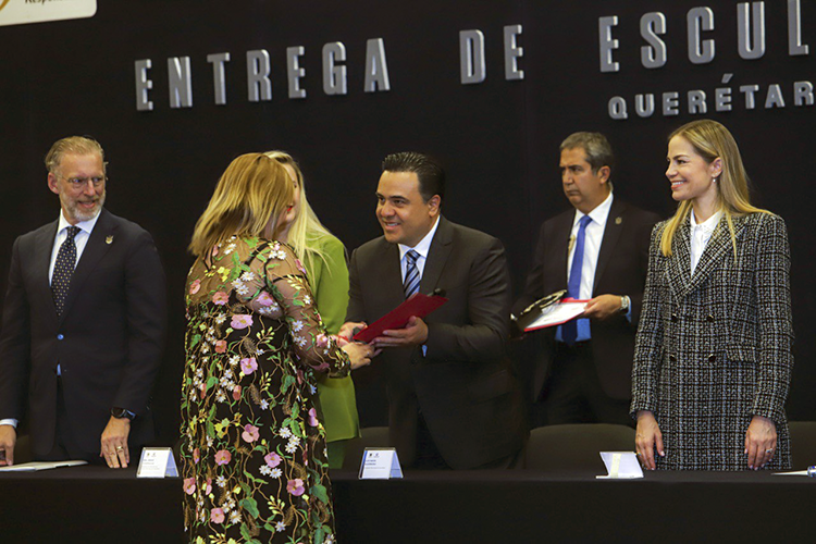 El Presidente Municipal de Querétaro, Luis Nava, acompañó al Gobernador del Estado, Mauricio Kuri González, a la entrega de esculturas del distintivo «Empresa Socialmente Responsable ESR 2022», impulsados por la Fundación Roberto Ruíz Obregón, como reconocimiento al compromiso de las empresas para lograr los cambios que impacten en su comunidad.