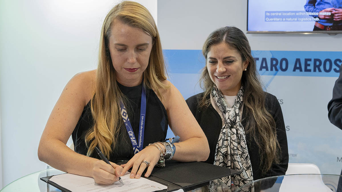 El evento se llevó a cabo durante el París Air Show 2023 y estuvo presente el vicerrector de Calidad y Estrategia, Andrés Martínez Fernández de la Universidad del Rey Juan Carlos (URJC); el rector de la Universidad Aeronáutica en Querétaro (UNAQ), Enrique Sosa Gutiérrez; el secretario académico en Ingeniería Aeroespacial de la URJC, Luis Cadarso Morga; el gerente de Aviation Group, Francisco Castaño; la presidenta del Clúster Aeroespacial en Querétaro, Verónica Méndez; el titular de la Comisión General de Entidades Paraestatales del Gobierno del Estado de Querétaro, Gerardo de la Garza Pedraza; así como Tamara Nieto, secretaria de Vinculación de la UNAQ.