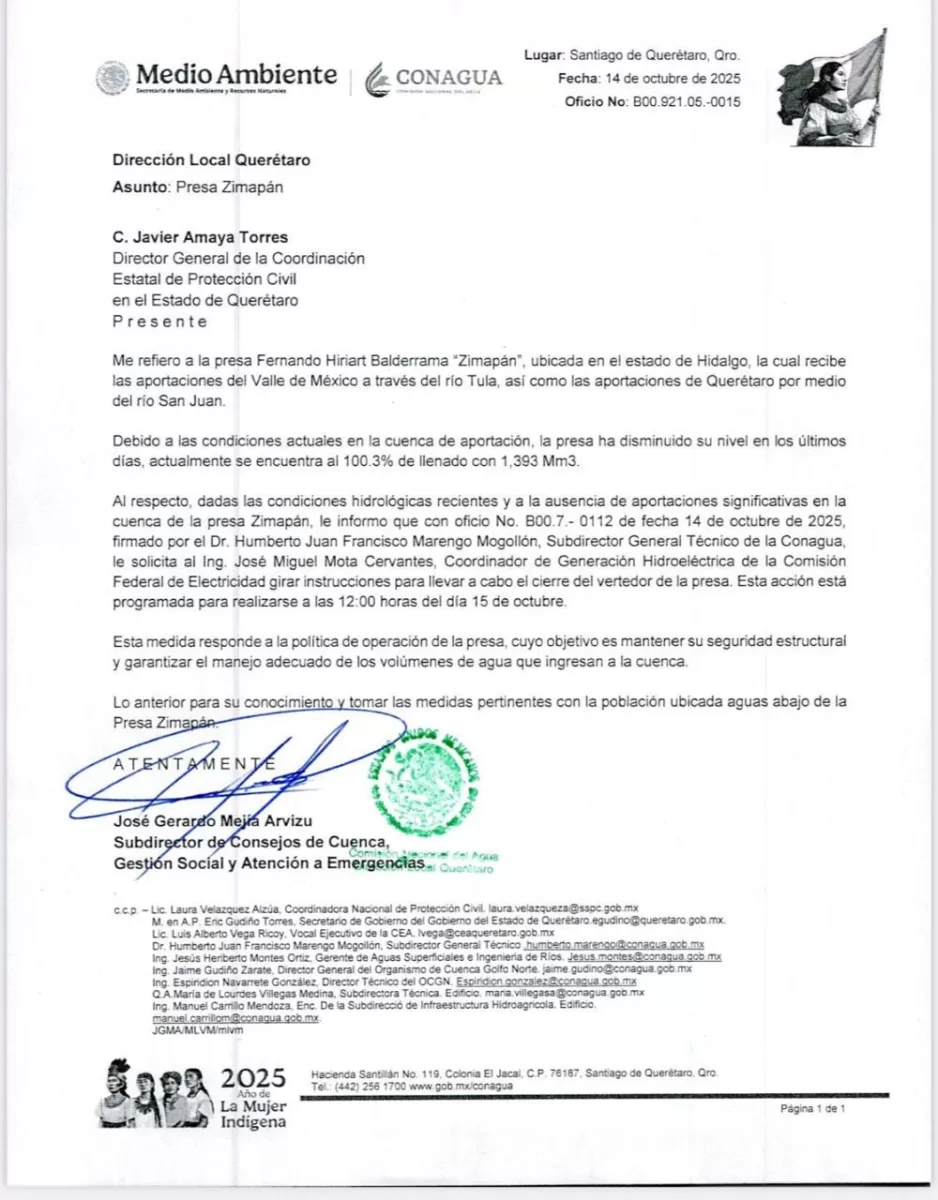 La Comisión Estatal de Aguas (CEA) informó el cierre del vertedor de la presa Zimapán, programado para las 12:00 horas del día de mañana, miércoles 15 de octubre, según una comunicación oficial a través de su cuenta de X. Esta acción, confirmada por la Comisión Nacional del Agua (@conagua_mx), es el paso previo para que la CEA comience el proceso de eliminación de sólidos de la presa derivadora del Sistema Acueducto II, antes de la puesta en marcha de sus equipos de bombeo. La entidad pidió a los ciudadanos seguir atentos a los canales oficiales para mantenerse informados sobre la evolución de la situación.