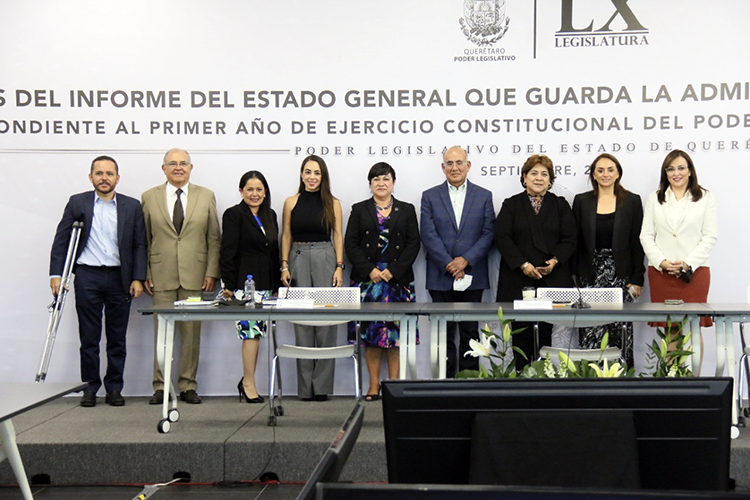 Santiago de Querétaro, Qro., 12 de septiembre de 2022. Al dar continuidad a la Glosa del Primer Informe de Actividades del Titular del Poder Ejecutivo estatal, la secretaria de Salud, Martina Pérez Rendón compareció ante diputados de la LX Legislatura del estado, con la moderación del diputado Luis Antonio Zapata Guerrero, presidente de la Mesa Directiva, quien estuvo acompañado de la diputada Dulce Imelda Ventura Rendón, presidenta de la Comisión de Salud.