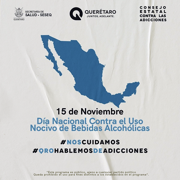 La Secretaría de Salud (SESA) del estado de Querétaro conmemora este 15 de noviembre el Día Nacional Contra el Uso Nocivo de Bebidas Alcohólicas, el cual tiene como objetivo sensibilizar a la población sobre los problemas relacionados con el consumo de alcohol. Para este año, el tema es “El A, B, C del Uso Nocivo de Alcohol”.