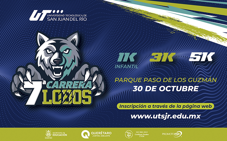 Con el propósito de fortalecer la práctica del deporte, la Universidad Tecnológica de San Juan del Río (UTSJR) convoca a la comunidad universitaria, corredores, deportistas y a las familias sanjuanenses en general, a participar en la séptima Carrera Lobos que se llevará a cabo el próximo 30 de octubre en las inmediaciones del Parque Paso de los Guzmán esperando una afluencia cercana a los mil 200 participantes.
