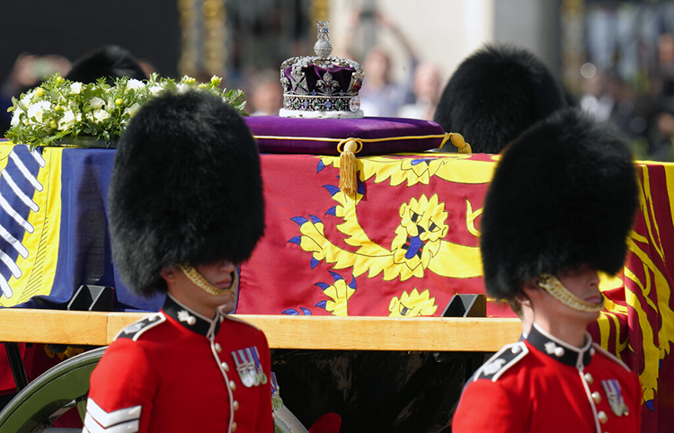 Con el estandarte real y la corona de Estado sobre el féretro y las salvas de artillería a intervalos de un minuto, la procesión desde el Palacio de Buckingham estuvo diseñada para destacar los 70 años de la reina como jefa de Estado.