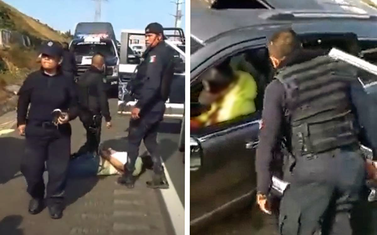 Tras una persecución, ambos vehículos arribaron a una vialidad de Atizapán y uno de los elementos de seguridad pública realizó detonaciones en contra de la camioneta de la víctima, quien supuestamente llevaba un arma de fuego en la mano derecha.