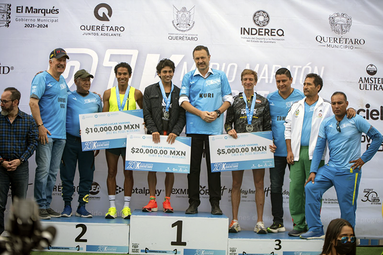 El presidente municipal de El Marqués, Enrique Vega Carriles junto al gobernador del estado, Mauricio Kuri González y el titular del INDEREQ, Edward Sánchez del Río, recibieron a los ganadores y premiaron a los tres primeros lugares de las categorías femenil y varonil, a quienes reconocieron y entregaron premios económicos de 20 mil, 10 mil y 5 mil pesos respectivamente.