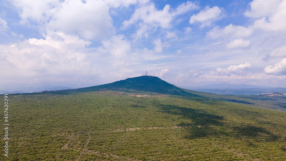 El cerro del Cimatario tiene una altura máxima de 2,350, Y es visible desde la ciudad de Santiago de Querétaro, dominando la vista desde casi cualquier punto