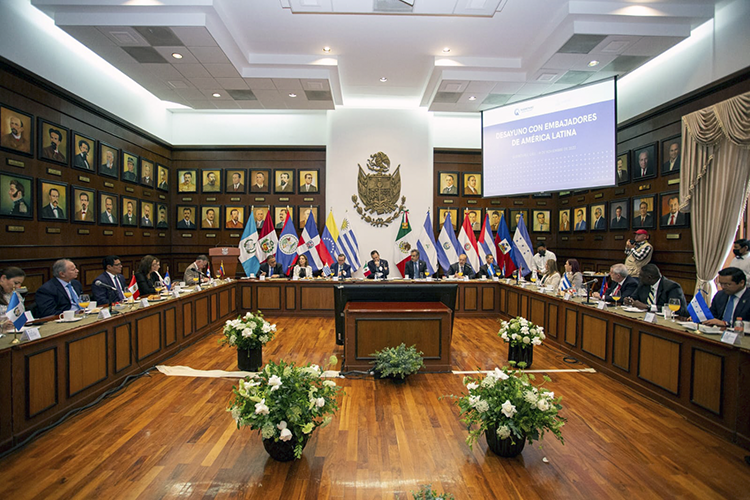 El Grupo Latinoamericano y del Caribe (GRULAC) es el grupo que reúne a los embajadores de América Latina y el Caribe acreditados ante el gobierno de México; durante el encuentro estuvieron presentes los Embajadores en México de Belice, Óscar Lorenzo Arnold; de Cuba, Marcos Fermín Rodríguez Costa; de Costa Rica, Pablo Heriberto Abarca Mora; de Guatemala, Marco Tulio Chicas Sosa; de El Salvador, Rosa Delmy Cañas Zacarías; de Nicaragua, Juan Carlos Gutiérrez Madrigal; de Paraguay, Gloria Yrma Amarilla Acosta; de Perú, Manuel Gerardo Talavera; de Venezuela, Francisco Javier Arias Cárdenas; el Ministro Encargado de la Embajada de Honduras en México, S.S. Dimas Alexis Escobar Guillén; y el encargado de Negocios de la Embajada de Haití en México, S.S. Yves Rody Jean.