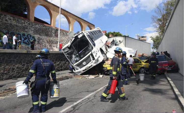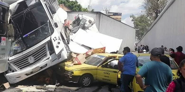 Una unidad de carga pesada impactó a por lo menos 5 vehículos que circulaban sobre carriles laterales de la autopista México-Querétaro con dirección hacia Avenida Cimatario.