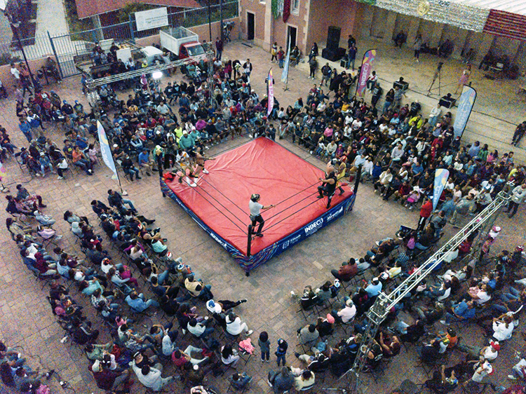 La Plaza San Pedro de La Cañada, fue sede de esta función, donde familias completas observaron con asombro a los integrantes de la Lucha Libre volar hábilmente desde alguna esquina del ring para formar llaves, someter a su oponente y vencerlo por rendición o conteo por espaldas planas.