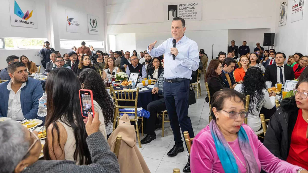 El mandatario afirmó que el crecimiento de Querétaro se debe al talento, los profesionistas y la industria, y aprovechó el encuentro para convocar a colegios y asociaciones a participar activamente en la vida pública del país y a ser exigentes con sus gobiernos.