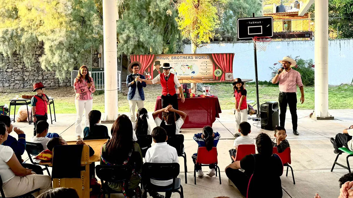 La gira de magia comenzó en el Centro de Atención Múltiple (CAM) de Corregidora, despertando risas y emoción entre estudiantes y familias, y continuó en el Jardín de Niños de la comunidad de Bravo.