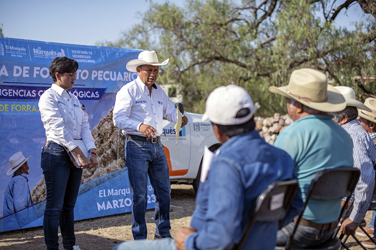 El municipio de El Marqués, a través de la Secretaría de Desarrollo Agropecuario, dio inicio al Programa de Fomento Pecuario, Atención a Contingencias Climatológicas con la entrega de pacas de forraje a productores ganaderos propietarios de bovinos, caprinos y ovinos, en la comunidad de La Laborcilla, contemplando continuar con el apoyo en las localidades con mayor presencia de ganadería dentro del municipio.