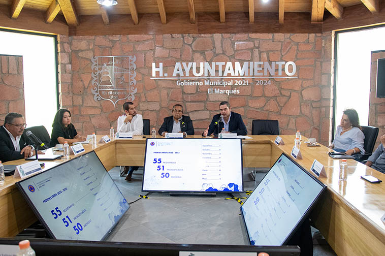 Con la finalidad de establecer las bases y mecanismos necesarios para prevenir, proteger y auxiliar a la población marquesina, autoridades del municipio de El Marqués llevaron a cabo la Reunión de Coordinación Intermunicipal para la Temporada de Lluvias 2023; donde se realizaron las presentaciones sobre la Intervención Preventiva de Drenes y Río Querétaro, las Brigadas Ante Contingencias 2023 y el Plan Estratégico Para la Temporada de Lluvias 2023.