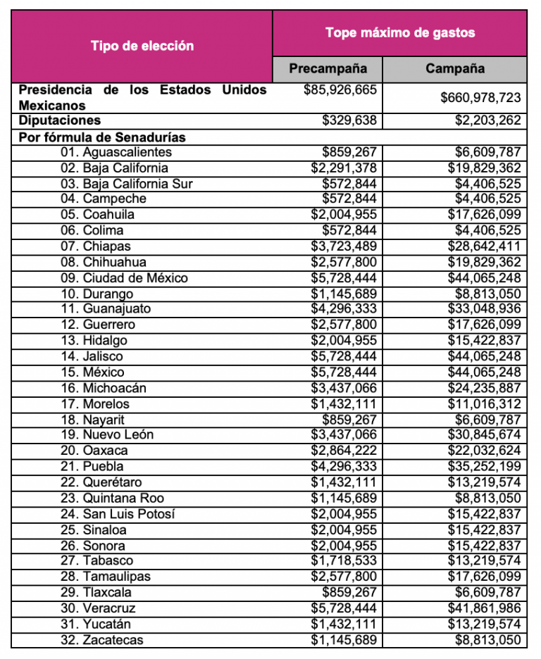 Nuevas topes para financiamiento de campañas y precampañas según el INE