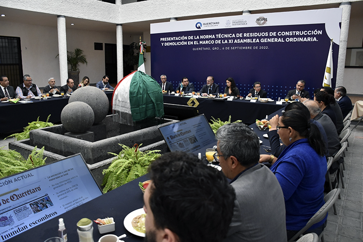 El titular de la Secretaría de Desarrollo Sustentable (SEDESU), Marco Antonio Del Prete Tercero, participó en la XI Asamblea General Ordinaria de la Federación de Colegios y Asociaciones de Profesionistas del Estado de Querétaro (FECAPEQ), en donde presentó los requisitos que forman parte de la Norma Técnica de Residuos de Construcción y Demolición (RCD).