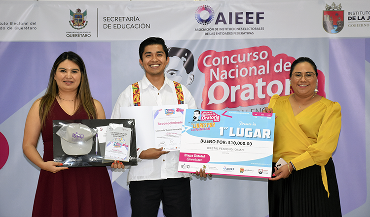 El Instituto Electoral del Estado de Querétaro (IEEQ) llevó a cabo la etapa estatal del Concurso Nacional deOratoria 2022 Dr. Belisario Domínguez Palencia “Libres por la palabra libre”, en el que resultó ganador Leonardo Daniel Rivera García, quien recibió un premio de $10,000.00 y representará a la entidad en la etapa nacional del certamen.