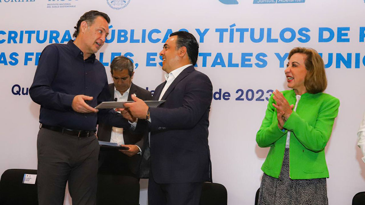 Diego Hoshin López Vergara, Representante Regional del INSUS, resaltó la colaboración entre Gobierno del Estado y Gobierno Municipal para llevar esta labor conjunta, y añadió que en lo que va del 2023, se han entregado alrededor de 400 escrituras y se espera llegar a mil en este año. También mencionó sobre un convenio de colaboración con el Municipio de Querétaro, a través de la Secretaría de Desarrollo Humano y Social, para generar mecanismos de coordinación para identificar los asentamientos que requieren el apoyo de escrituración.