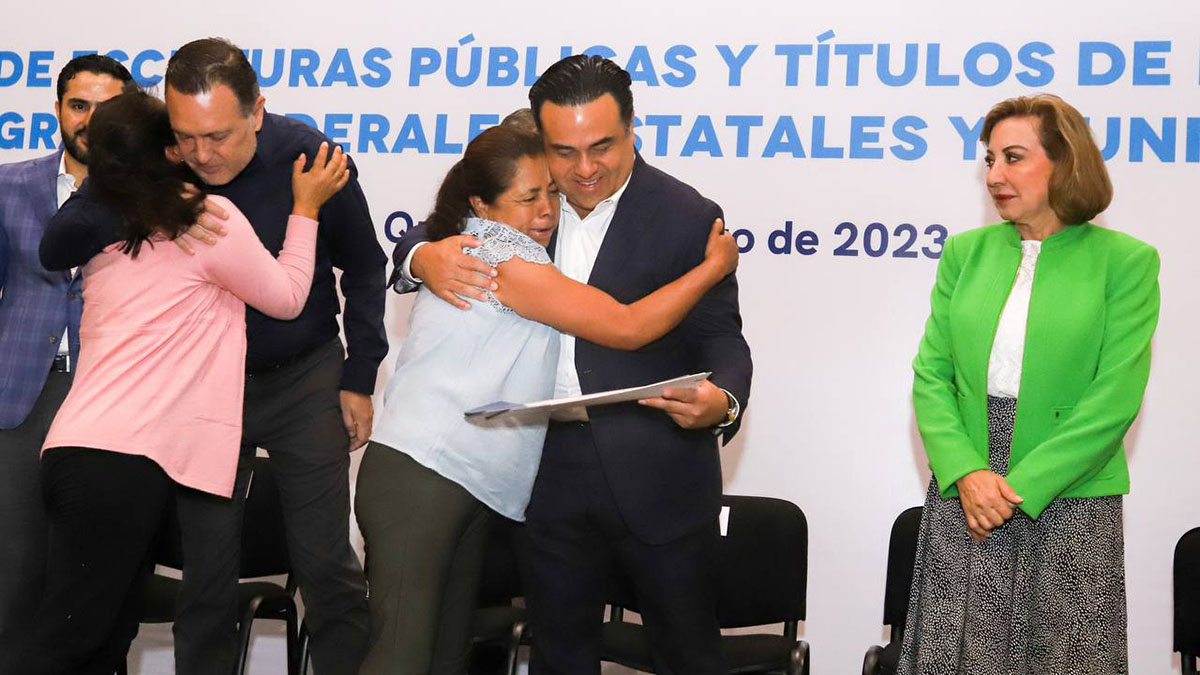 Además, se entregaron 65 escrituras y títulos de propiedad en la capital, otorgando a sus propietarios la seguridad de poseer legalmente sus hogares; 40 escrituras fueron entregadas en las Delegaciones Josefa Vergara y Hernández, Félix Osores, y Carrillo Puerto y 25 más en los asentamientos humanos 25 de diciembre, Desarrollo Familiar, Miguel Hidalgo, Revolución, Altos de Cimatario, Manantiales del Cimatario y Amalia Solorzano, entre otros.