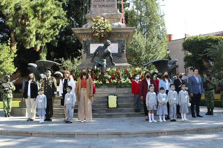 Durante el acto cívico se realizaron honores a la bandera, posteriormente, estudiantes de la escuela Primaria Corregidora colocaron una ofrenda floral, donde las autoridades encabezaron la guardia de honor al pie del monumento de la Corregidora.